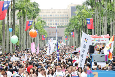 The Taiwan Pride parade, themed “Beyond links, more than clicks,” promoted understanding of different life experiences amid global hostility toward diversity, equity and inclusion (DEI) initiatives, the Taiwan Rainbow Civil Action Association said at the event yesterday.Nearly 150,000 people attende