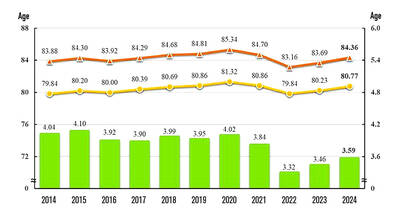 DISEASE WATCH: An unexplained increase in deaths attributed to pneumonia, the third-biggest cause of death last year, is of concern, the Ministry of the Interior said The life expectancy in Taiwan last year was 80.77 years — up from 80.23 a year earlier — with cancer the top cause of death for the 43rd consecutive year, the Ministry of the Interior said in a statement yesterday.Cancer deaths totaled 54,032 last year, or 26.83 percent of all deaths, the ministry s