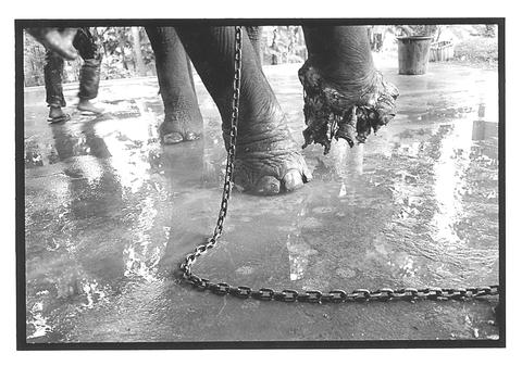 Donning white cotton gloves, Chang fastidiously unrolls the silver gelatin prints. "Every print is different -- the human touch," he says. "I'd never be happy with computer prints." He peers at the surface, blows on the fiber paper to see whether the spot is a speck of dust or an imperfection. The unmistakable shape of an elephant looms amid tropical wilderness, but the elephant is chained. Chang examines the other photographs he took of these animals in Thailand, maimed by land mines, undergoing surgery, dying and dead.