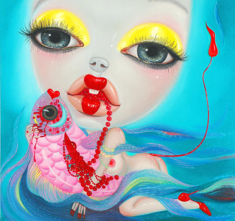 Unlike Warhol, however, animamix artists frequently mass-produce their works and market them as videos, mouse pads and more. Murakami has a whole line of plastic figurines that sell for about US$3. At the opening of the exhibition at the Sun Yat-sen Memorial Hall, South Korean artist Kwon Ki Soo was handing out rubber key chains and cell phone caddies of a character from his paintings.