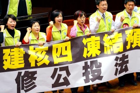While both Taipei Mayor Hau Lung-bin (郝龍斌) and New Taipei City Mayor Eric Chu (朱立倫) of the KMT yesterday expressed support for a referendum, DPP Chairman Su Tseng-chang (蘇貞昌) reiterated that the DPP opposes the construction of and the allocation of additional budget to the power plant, adding that the government should not resort to a “trick” based on the Referendum Act.