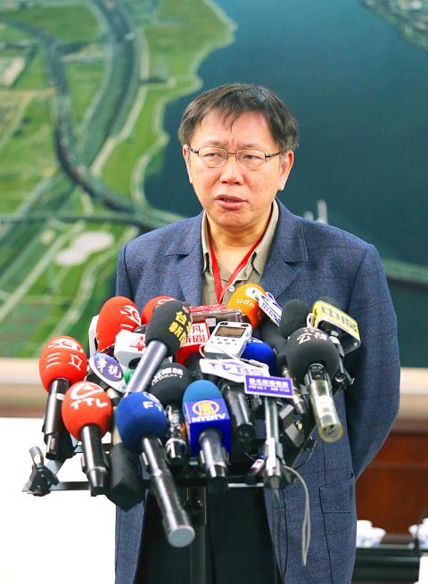The Taipei City Government will not accept threats from corporations, Taipei Mayor Ko Wen-je (柯文哲) said yesterday after Hon Hai Group (鴻海集團) stopped construction of the Syntrend Creative Park (三創園區).