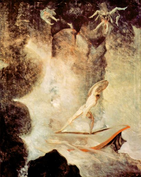 As with the choice between the sea monster and the whirlpool, the Devil and the deep blue sea represent two fearsome choices. The first appearance of the phrase in print was in the 1637 book Monro, His expedition with the worthy Scots regiment (called Mac-Keyes-regiment) levied in August 1626, which has the line “I, with my partie, did lie on our poste, as betwixt the devill and the deep sea” (I, with my party, lay on our post, as if between the Devil and the deep sea).