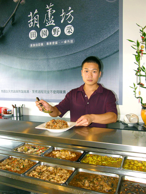 Wu Chung-yueh runs a modest vegetarian cafeteria in Kaohsiung, helped only by his mother and an employee. The hours are long, the kitchen is hot and the pay isn't that great.