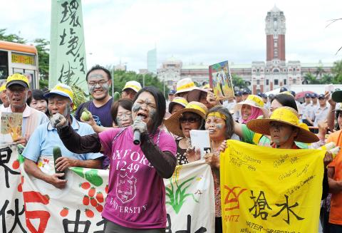Some artists and writers also joined the farmers to express their support, including folk singer Chen Ming-chang (陳明章) and writers Chu Tien-hsin (朱天心) and Wu Yin-ning (吳音寧).