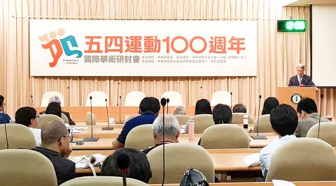 Academia Sinica yesterday began a three-day conference in Taipei to mark the centenary of the May Fourth Movement, with Academia Sinica president James Liao (廖俊智) saying that academic research must be independent and free of the yoke of political ideology.
