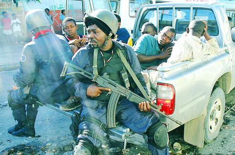 Peacekeepers in armored personnel carriers moved into the Bel Air slum Wednesday while gunfire crackled and two helicopters roared overhead, trying to put down a campaign by Aristide loyalists who have carried out gory beheadings in imitation of Iraqi insurgents. The headless body of a man lay in the street in La Salines, another slum, on Wednesday morning. Three police officers also were decapitated last week when Aristide supporters stepped up protests demanding his return from exile in South Africa and launched "Operation Baghdad."
