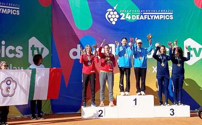 Taiwanese tennis duo Lin Chia-wen (林家文) and Ho Chiu-mei (何秋美) on Thursday defended their women’s doubles title at the Summer Deaflympics in Brazil, earning Taiwan’s second gold medal at the Games. Lin and Ho defeated Germans Heike Albrecht-Schroder and Verena Fleckenstein 6-4, 6-1 in a relatively comfortable victory. “After waiting for five years, we are able to win a gold medal again,” Lin said after the match, while also thanking her partner for her performance. The duo won the women’s doubles in 2017 at the Summer Deaflympics in Turkey, the most recent previous edition of the Games. Lin also took home gold in the women’s singles event that year. In Brazil, she still has chances to win gold in two more events — the women’s singles and mixed doubles — with both finals scheduled for yesterday. Ho was to vie for the bronze medal in the women’s singles against Rotem Ashkenazy of Israel. In other events, Taiwan’s Hsu Le (許樂) advanced to the semi-finals of the women’s 200m dash with a time of 26.32 seconds in the qualifying round on Thursday. She was to race in the semi-finals and finals yesterday. Earlier this week, Hsu won the women’s 100m hurdles to snag Taiwan’s first gold medal at this year’s Games, after she earlier won a bronze medal in the women’s 100m. The Taiwanese delegation consists of 39 athletes, who were competing in eight sports — track and field, badminton, table tennis, tennis, men’s basketball, karate, taekwondo and shooting.