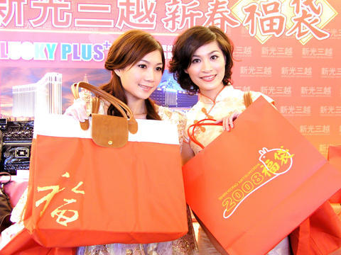 Taipei department stores -- including the Living Mall (京華城), the Breeze Center (微風廣場), the Shin Kong Mitsukoshi Department Store (新光三越百貨) and the Pacific Sogo Department Store (太平洋崇光百貨) -- will launch their own "Fortune Bag" promotions.