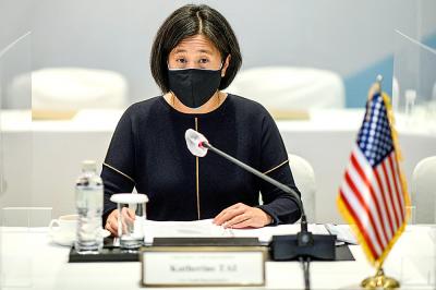 Trade relations between Washington and Beijing are at a “difficult” stage, but US President Joe Biden’s administration is committed to protecting the US economy from negative impacts of China’s policies, the top US trade official said on Monday. US Trade Representative Katherine Tai (戴琪) said her team will “engage robustly” with China in ongoing talks over Beijing’s commitments to buy US goods under a deal signed under former US president Donald Trump. “We’re in a very difficult stage of this trade relationship,” Tai said, adding that “the conversations are not easy.” The two countries signed a so-called “phase one” agreement in January 2020,