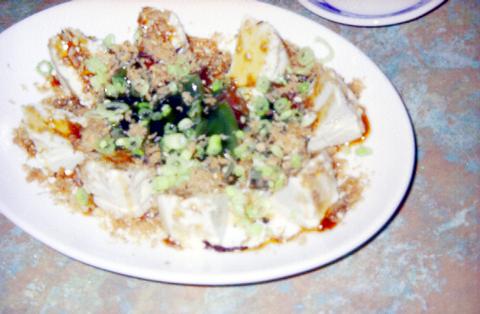 The somewhat freaky cold stinky tofu (涼拌臭豆腐) is actually quite refreshing -- similar to, but milder than blue cheese. With its soft and dense texture, it's served with shredded scallions in a light soy sauce and is recommended as a starter.