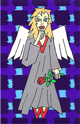 His painting Angel, stands 50m high, and at its base there is a button with a counter attached. "[People] can press the button and can be counted as someone who wishes for peace. If lots of people push the button, there is the addition of many people looking for peace, and the wishes come up to the universe, and then float back down into the world. I would like to make a network with this angel and the counter, ... but you need sponsors, for it is a lot of work." A limited edition of an A4 silk-screen print signed by the artist fetches around US$112.