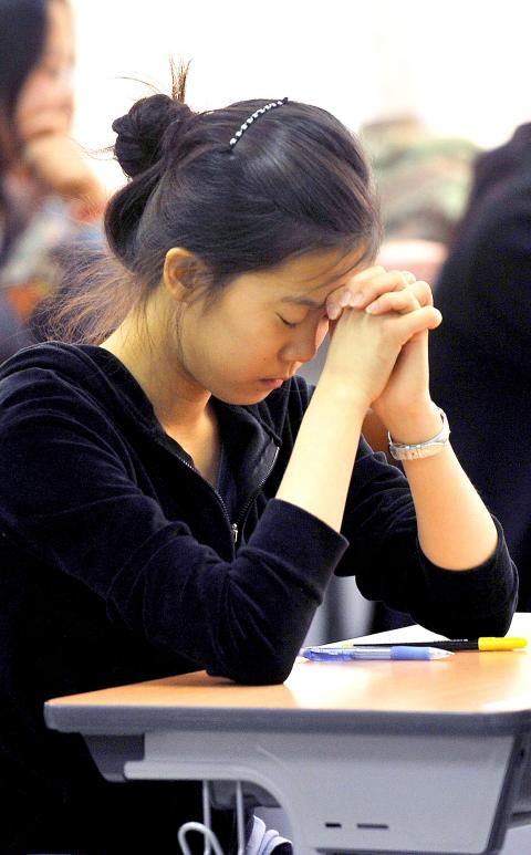 Flights and military artillery drills are rescheduled to cut noise during language listening tests in the morning and afternoon, while throngs of parents gather outside test centers or visit Buddhist temples and churches to pray for good scores.