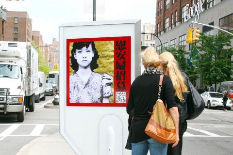 Her interview is part of an art exhibition titled Comfort Women Wanted, which is currently on display at Bopiliao Old Street (剝皮寮歷史街區) and outdoor venues across Taipei.