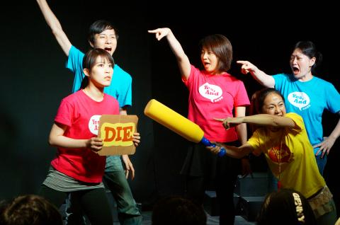 It was one of the several improvisational skits performed by actors from the Guts Improv Theater (勇氣即興劇場) last Friday at the company’s newly opened theater. This type of performance is called Theatersports, an invention of Keith Johnstone, a British pioneer of improvisational theater, which combines the format of a competition with theatrical performance.