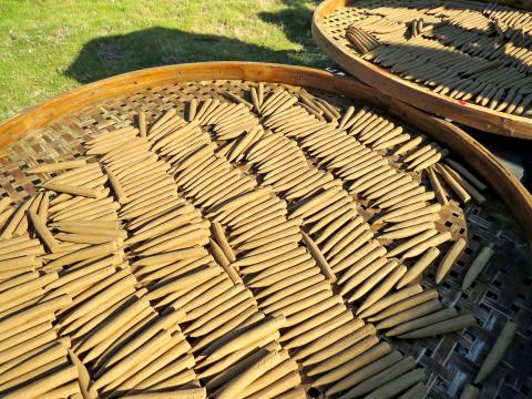 Four years ago at his father’s request, Andrew Chen (陳怡碩) resigned from his job running a 7-Eleven in Greater Kaohsiung. Now he runs the family business, making sticks of mosquito-repelling incense out of his ancestral home in Erkan (二崁), Penghu County.