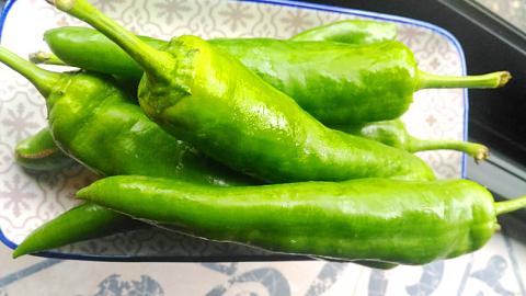 Cow horn chilies (角椒) are one of these mild-mannered chilies that are widely available in Taiwan at the moment. They are most famously served in the dish of pork stuffed cow horn chilies (角椒鑲肉), a delicious and rather sophisticated side dish that balances a slightly sweet stuffing of minced pork with the very slight spice of the chilies. But cow horns have many applications, and I have used them for a slightly toned-down version of my Chicken Liver Picante (Taipei Times, Sept 3, 2016) to good effect.