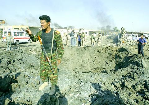 "We were all standing in a row, listening to our officer as he gave us our assignment for the day," said Mehdi Salah Abed Ali, 32, lying in a bed at al-Yarmuk hospital, a bandage around his leg.