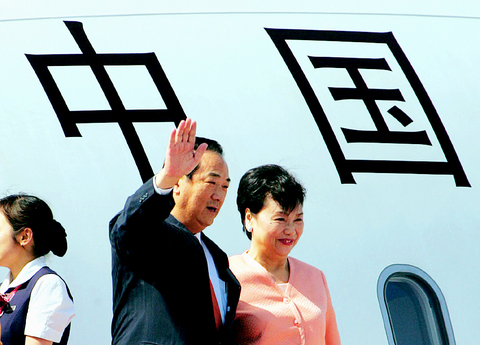 He was greeted at the airport by Beijing's Taiwan Affairs Office director Chen Yunlin (