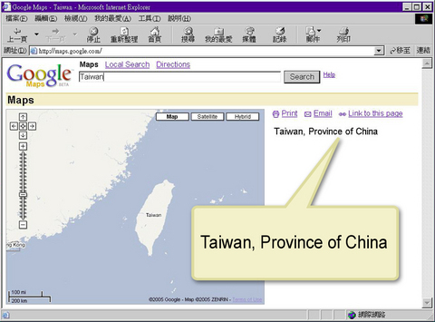 TSU Legislator Tseng Tsan-teng (曾燦燈) said that the search engine's listing of Taiwan as a part of China has no basis in reality whatsoever.