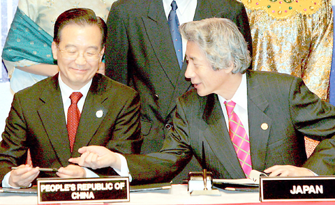 As leaders of the newly inaugurated East Asia Summit were signing a declaration on the group's establishment, Koizumi, seated next to Wen, leaned over and asked to borrow his pen.