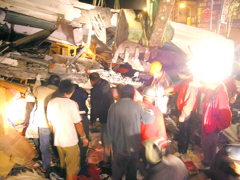 The quakes knocked down two apartment buildings in Hengchun, burying 11 people in the rubble. At press time, the body of a man had been recovered and four people rescued, while six people were still trapped.