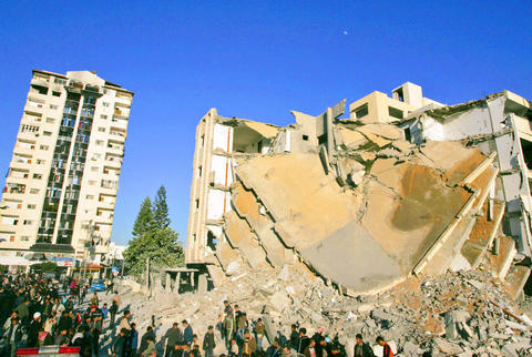 An Israeli warplane bombed the empty building, flattening one wing, killing a woman at a wedding party next door and wounding at least 46 civilians, some of them children playing soccer in the street.