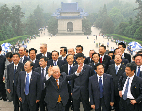 Wu Poh-hsiung paid homage at Sun Yat-sen’s (孫逸仙) Mausoleum in Nanjing yesterday, saying both the “mainland” and Taiwan belong to the Chinese nation and are “closely tied by blood,” which no one could obliterate. He said the KMT has promised to make the welfare and interests of the people of Taiwan its top priority because the people gave the KMT its election victories.