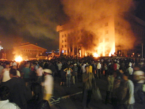 Mongolian President Nambaryn Enkhbayar declared the emergency after rock-throwing protesters clashed with police on Tuesday as they mobbed the headquarters of the ruling Mongolian People’s Revolutionary Party (MPRP) and set it on fire.