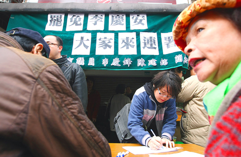 Legislative Speaker Wang Jin-pyng (王金平) said he respected Lee’s decision and hoped her resignation would put an end to the controversy. He said, however, that the legislature could still deliberate over how to deal with the DPP’s proposal to unseat Lee.