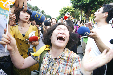 “Stop the political persecution,” one of the banners held up by protesters read, while others accused President Ma Ying-jeou (馬英九) of manipulating the judiciary and urged him to step down.