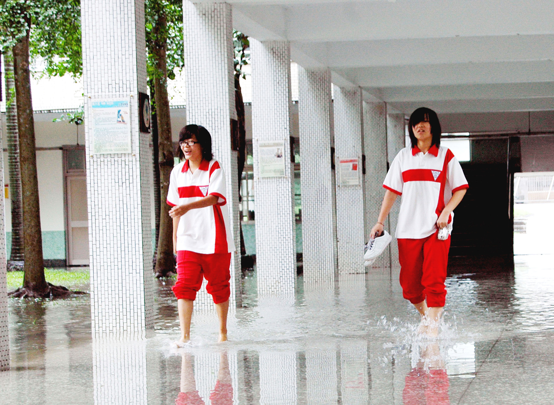 Heavy rain brought by Tropical Storm Lupit’s outer reaches yesterday flooded schools and roads in Yilan City, which had only recently recovered from damage caused by Typhoon Parma last week.