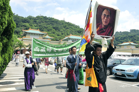 “The Dalai Lama is the highest spiritual leader in Tibetan Buddhism. How could a portrait of the Dalai Lama be missing at an exhibition about Tibetan Buddhism?” asked Regional Tibetan Youth Congress-Taiwan (RTYC-Taiwan) chairman Tashi Tsering, wearing a traditional Tibetan outfit and holding up a large portrait of the Dalai Lama.