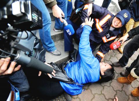 Chen’s schedule took him to Hsinchu County later yesterday, where he donated NT$6.7 million to disadvantaged families in cooperation with the county government. A tearful woman there also attempted to get closer to Chen, saying she had traveled from Taipei to Hsinchu to ask for money to pay for her husband’s funeral.