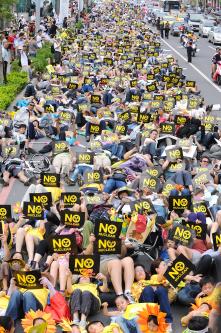 Appealing to the government to map out retirement plans for the nation’s three operational nuclear power plants, to put an end to the construction of the Fourth Nuclear Power Plant and to create a nuclear-free homeland where everyone can live without fear of a nuclear disaster, the protesters shouted slogans such as, “Cherish life, end nuclear power,” and “I want a nuclear-free homeland.”