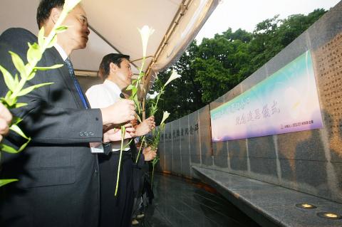 Ma went on to say that preventing the outbreak of war would avoid the same tragedy from happening again, adding that it was the primary reason why he has worked to ameliorate cross-strait tensions since assuming the presidency in 2008 because he hoped that the “Chinese people [中華民族] would never fight one another again.”