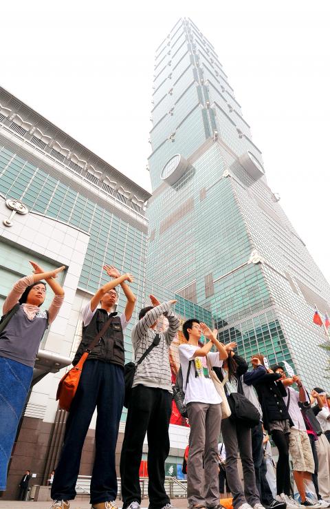 The protesters said Taipei 101 was chosen as the target because it is a landmark symbol of capitalism in Taiwan. Participants were mostly students, but also included office workers and unemployed and retired people.