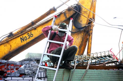 The project in Taipei’s Shilin District (士林), under which a construction firm plans to turn an old residential complex for 38 households into a 15-story high-rise apartment complex, was stalled for three years because of opposition from a family surnamed Wang (王), who had lived in the area for decades. The Wangs were evicted on Wednesday and their two stand-alone homes demolished.