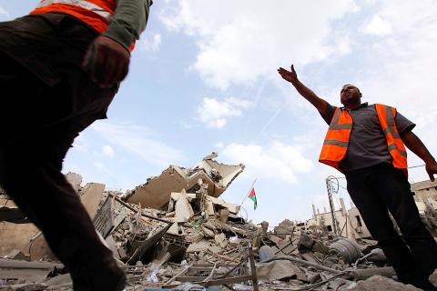 A three-story house belonging to Hamas official Abu Hassan Salah was also hit and completely destroyed early yesterday. Rescuers said at least 30 people were pulled from the rubble.