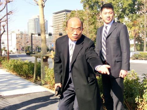 Earlier yesterday afternoon, Su visited the ruling Liberal Democratic Party (LDP) headquarters and met LDP Secretary-General Shigeru Ishiba, a former defense minister, to exchange views on security in East Asia, the dispute over the Diaoyutai Islands (釣魚台), known as the Senkakus in Japan, and bilateral trade relations.