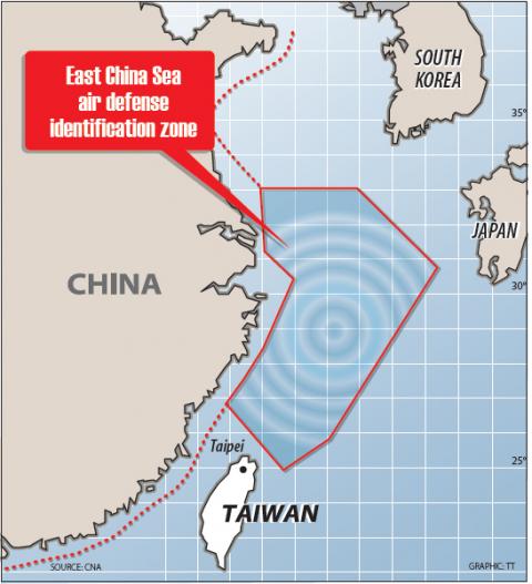 Chinese Nationalist Party (KMT) Legislator Lin Yu-fang (林郁方), who also sits on the legislature’s Foreign Affairs and National Defense Committee, suggested that China’s move was aimed at Japan, as China did not include Taiwan’s Pengjia Islet (彭佳嶼) in its East China Sea air defense identification zone.
