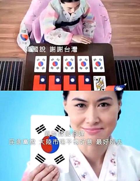 A TV commercial released by the Chinese Nationalist Party (KMT) accusing the Democratic Progressive Party (DPP) of stalling the nation’s development, featuring a woman clad in traditional Korean dress with captions saying that South Korea — which has just reached a consensus with China on a free-trade agreement — is grateful to the opposition party for accelerating its trade deal with China has not only incurred criticism in Taiwan, but has also been frowned upon by foreign media.