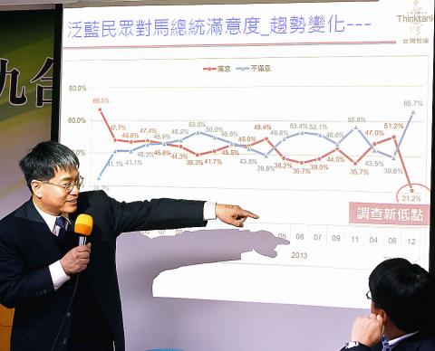 One of the main reasons behind the Chinese Nationalist Party’s (KMT) disastrous defeat in the nine-in-one elections on Saturday last week is the public’s strong disapproval of President Ma Ying-jeou (馬英九) and Premier Jiang Yi-huah’s (江宜樺) performances, particularly among the younger generation, a Taiwan Thinktank survey said yesterday.