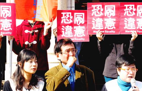 Backed by more than a dozen lawyers, as well as activists from the Taiwan Alliance to Promote Civil Partnership Rights (TAPCPR), Chi said that the laws that bar same-sex couples from marrying are a violation of their constitutional rights.