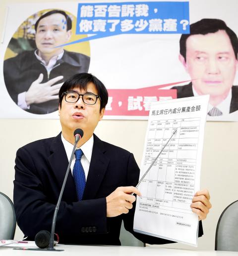 Chen said Ma had sold KMT party assets cheaply during his tenure as chairman, and the KMT Administration and Management Committee had become Ma’s personal coffer, with the transactions not reported to the KMT Central Standing Committee.