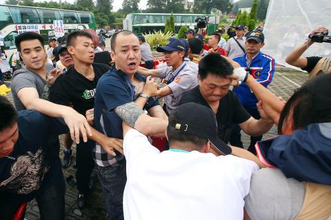 “There were just four or five police officers stationed around us, even through they had seen several dozen black-clad men with gang tattoos who were watching us from the very beginning of the protest,” Chang Chao-lin said.