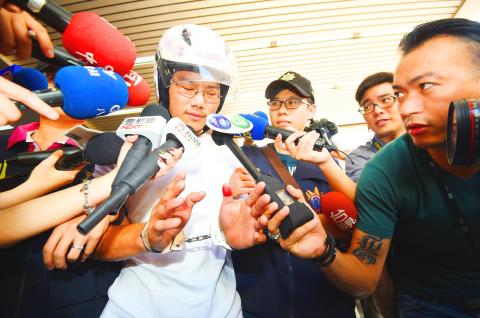The suspected killer, 29-year-old Kung Chung-an (龔重安), was taken into custody after questioning at Taipei’s Shilin District Prosecutors’ Office yesterday, with authorities continuing their investigation.