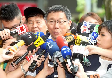 Ko confirmed that New Taipei City Mayor Eric Chu (朱立倫) of the Chinese Nationalist Party (KMT) had called him on Monday night, but said that more than half of the telephone call had simply been “chatting.”