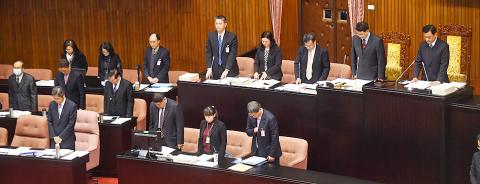The session commenced with Legislative Speaker Su Jia-chyuan (蘇嘉全) leading the legislature and Executive Yuan officials in observing a moment of silence for those who lost their lives in Tainan in the earthquake that struck on Feb. 6.