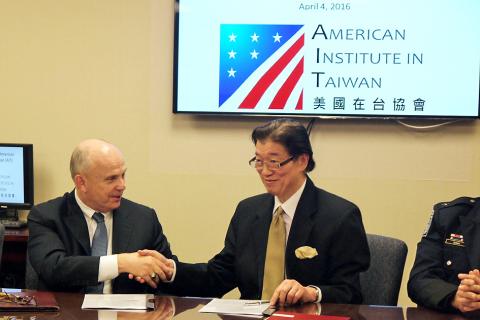 Taipei Economic and Cultural Representative Office (TECRO) Representative Shen Lyu-shun (沈呂巡) and American Institute in Taiwan (AIT) Managing Director Joseph Donovan signed the cooperation agreement at a short ceremony at the AIT’s offices in Washington.